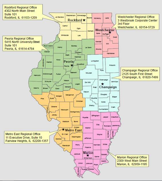 SUBTITLE D: CODE DEPARTMENTS CHAPTER XVIII: DEPARTMENT OF PUBLIC HEALTH PART 1125 PUBLIC INFORMATION, RULEMAKING, AND ORGANIZATION OF THE DEPARTMENT OF PUBLIC HEALTH SECTION 1125.APPENDIX C REGIONS OF THE ILLINOIS DEPARTMENT OF PUBLIC HEALTH Section 1125.APPENDIX C Regions of the Illinois Department of Public Health